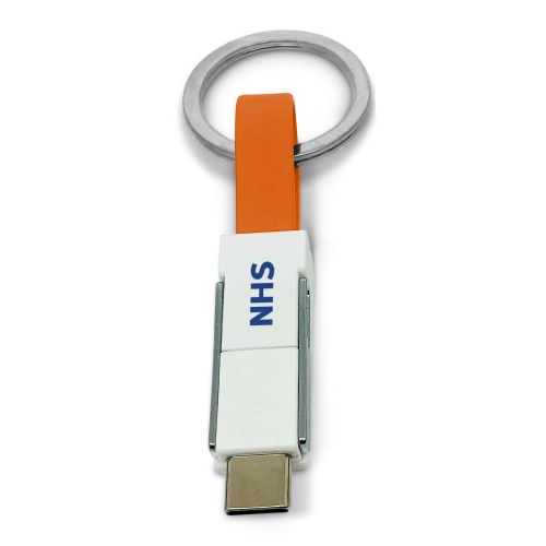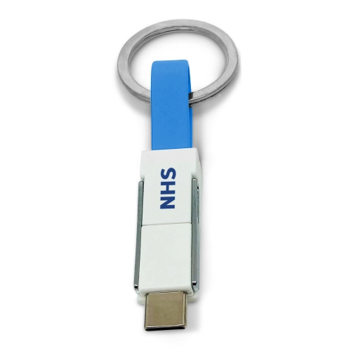 3-in-1 Keyring Charging Cable is the practical way to carry a charging cable with you on the go.Charge from any USB power source by lightning, USB-C or micro-USB dual tip with this fast charging speeds.Magnetically clips together making it easy to carry with you on your keys. Available in a wide range of standard colours.Split ring fitment included. Minimum of only 100pcs.