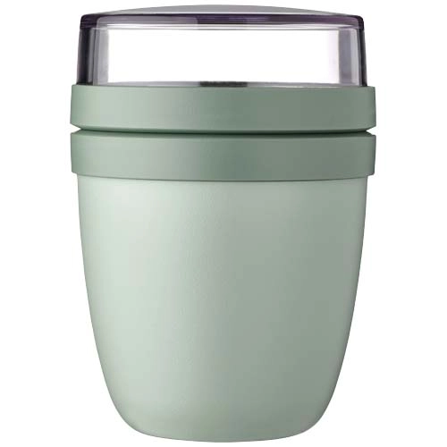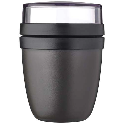 The Ellipse Mini lunch pot is perfect for a variety of snacks, such as yogurt with muesli or soup with croutons. Featuring two smart compartments in one sturdy container, it keeps your ingredients neatly separated. Its compact size makes it ideal for easily fitting into a school bag for a quick, convenient meal. The top transparent container holds 120 ml, ideal for around 50 grams of muesli or fruit, and the bottom container has a capacity of 300 ml. Leakproof and dishwasher safe. BPA free.Specs & Prices content